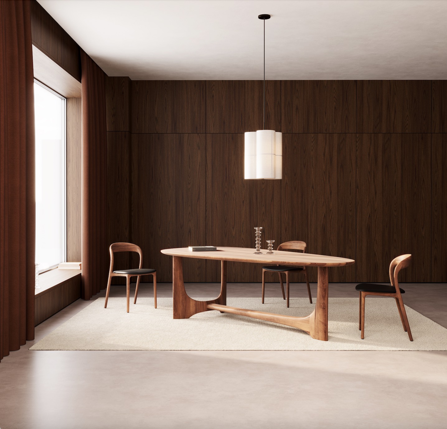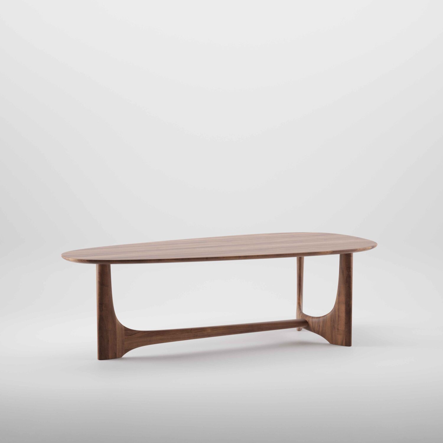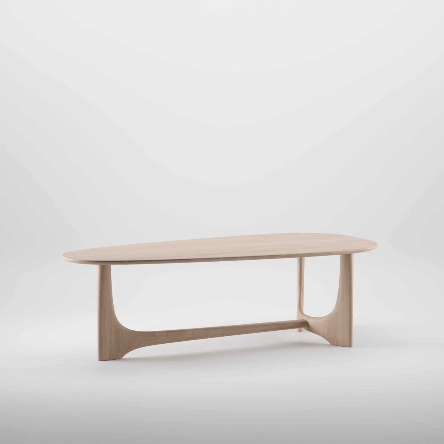 The Oskar Table is defined by its sculptural architectural base and solid timber construction.